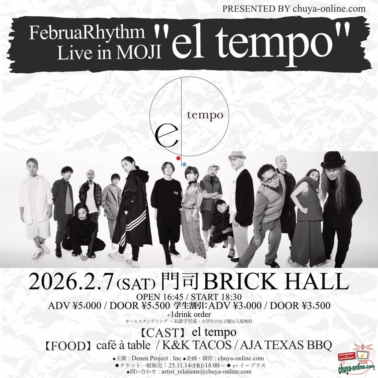 日時 2026.1.31(土)OPEN 12:00START 13:00 料金 ・・・FebruaRhythm Live in MOJI "el tempo"