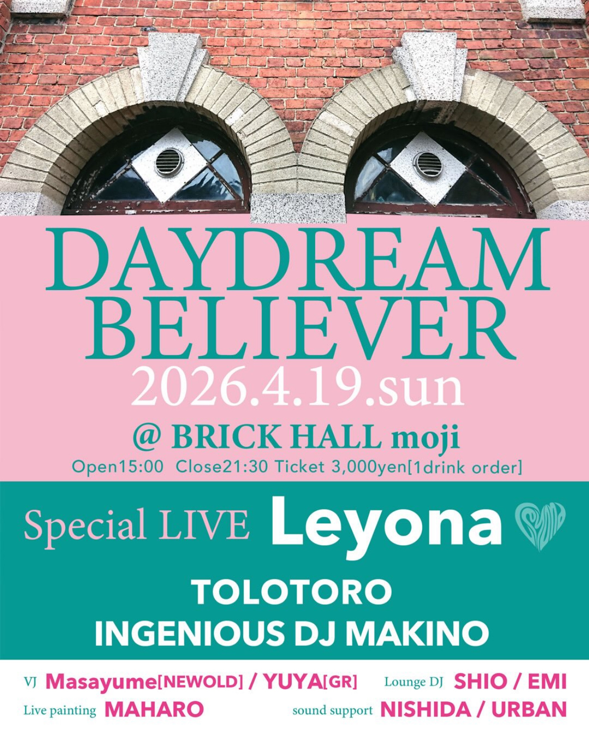 日時 2026.3.29(日)START 13:00CLOSE 18:00 ・・・DAYDREAM BELIEVER
